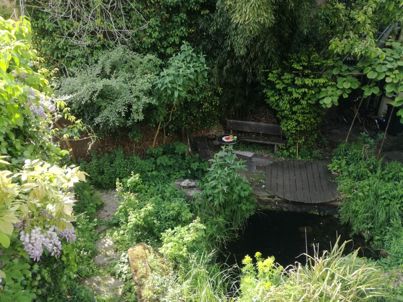Deze ecologische tuin achter het hostel Strowis verwacht men niet gauw in de binnenstad van Utrecht. Tuinornamenten zijn hier volop aanwezig. De oude waterput mag zeker genoemd worden. De tuin is aangelegd met natuurlijke materialen en beplant met inheemse planten waardoor er veel insecten, amfibieën en vogels te vinden zijn. De vijver heeft hierbij een belangrijke functie. Zelfs de vroedmeesterpad laat zich hier af en toe horen. Naast inheemse planten gedijen ook mediterrane soortgenoten als druif, olijf en vijg.