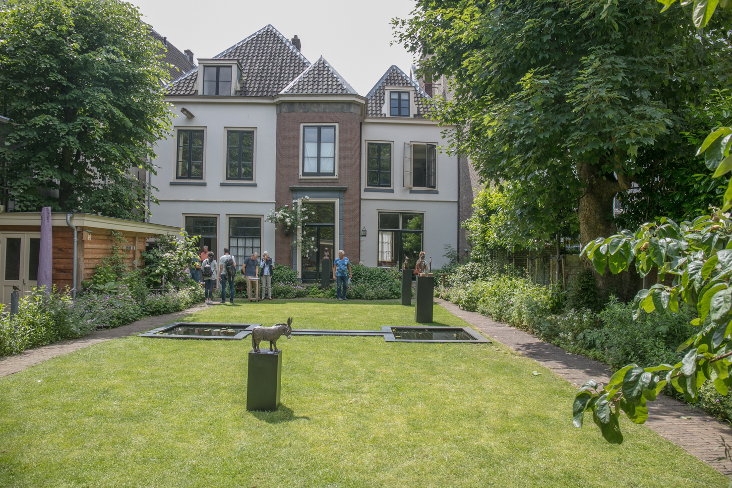 Deze grote stadstuin is een van de weinige overgebleven tuinen tussen de huizen aan de Kromme Nieuwegracht en de Nobeldwarsstraat. De geheel ommuurde tuin, waarvan de muren nog gedeeltelijk uit kloostermoppen zijn opgemetseld, wordt links begrensd door het gebouw van de Sint Gregoriusschool en rechts door het diepe pand Kromme Nieuwegracht 38. De achterzijde wordt afgesloten door het voormalige koetshuis en appartementen voor conservatoriumstudenten, gelegen aan de Nobeldwarsstraat. Een dubbel grasveld beslaat het grootste deel van de tuin. Aan de randen bevinden zich borders met vaste planten. Leilinden zorgen voor enige privacy.