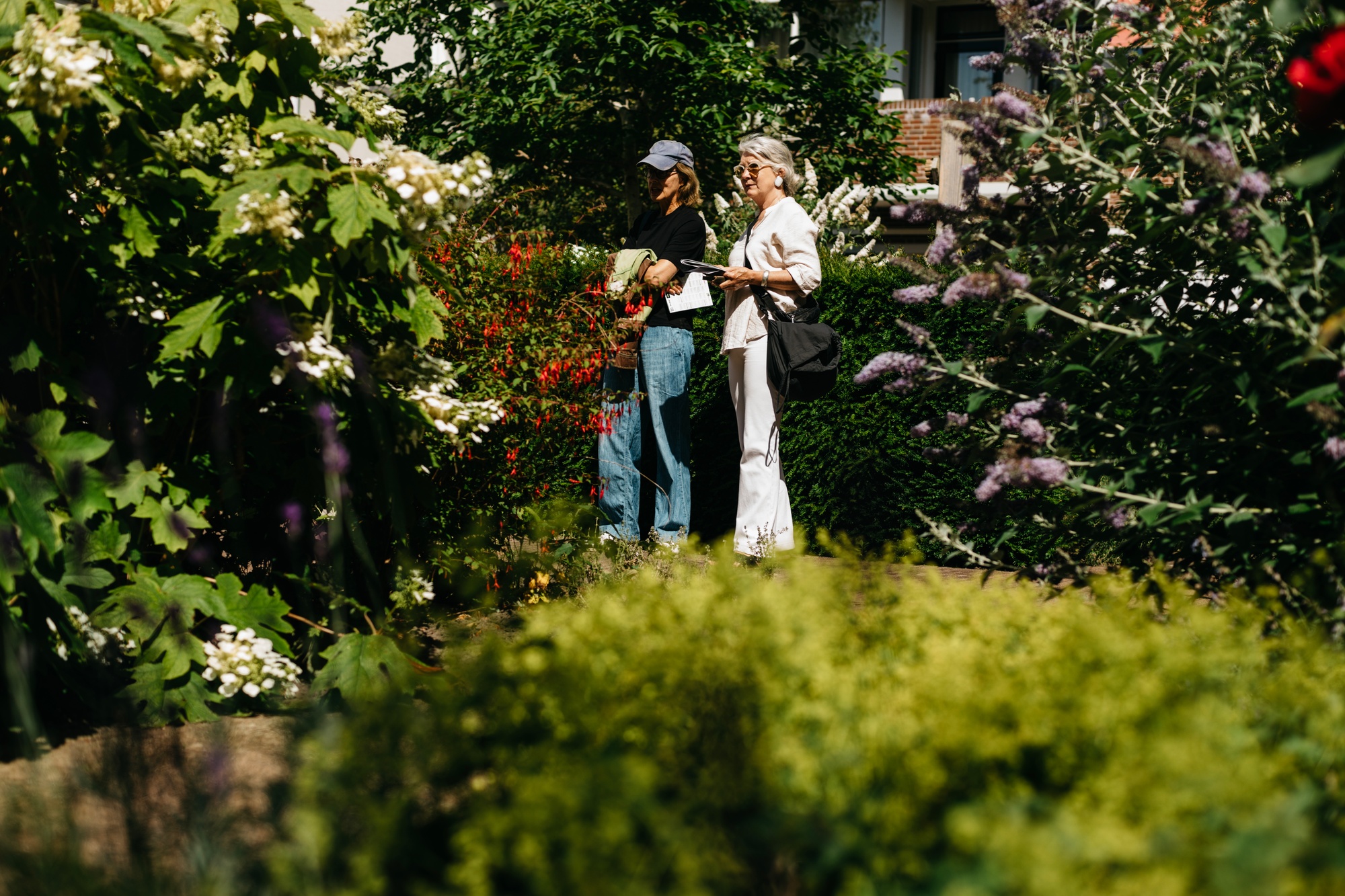Het tuinmeubilair is een verwijzing naar Parijse stadstuinen waar iedere wandelaar kan gaan zitten om van de omgeving te genieten. De aanwezige beweegtoestellen en kinderspeeltoestellen versterken het publieke karakter van de tuin. Er zijn vijf bronzen beelden van Utrechtse kunstenaars te vinden: Agnes van Leeuwenbergh van Theo van de Vathorst (1991), Zittende vrouw (Madame Robert) van Pieter d’Hont (1972), Uil van Rien Goené (jaar onbekend), Hooglied II van Otto Hamer (1973/74) en Herinneringen van Jits Bakker (1984).