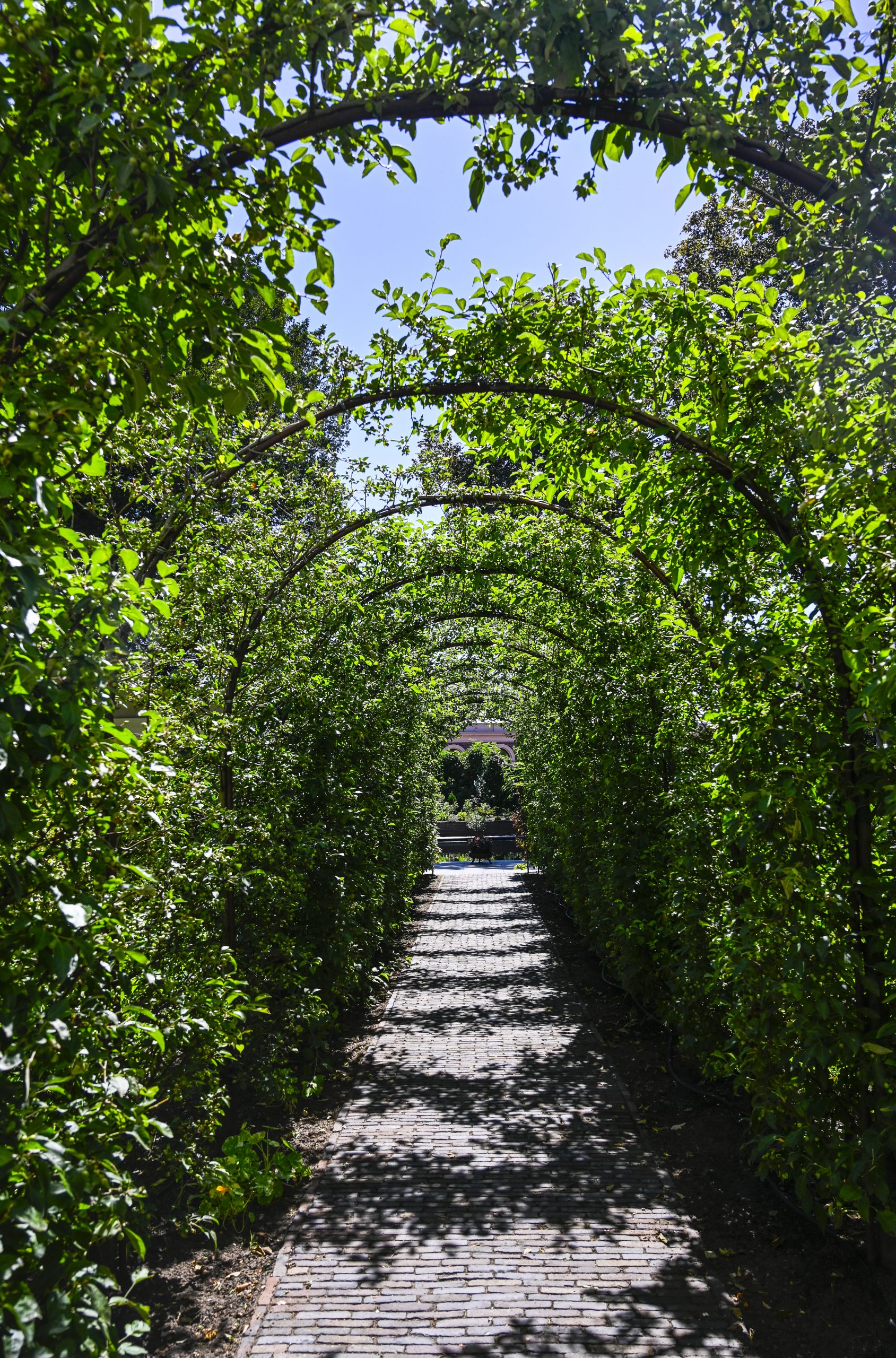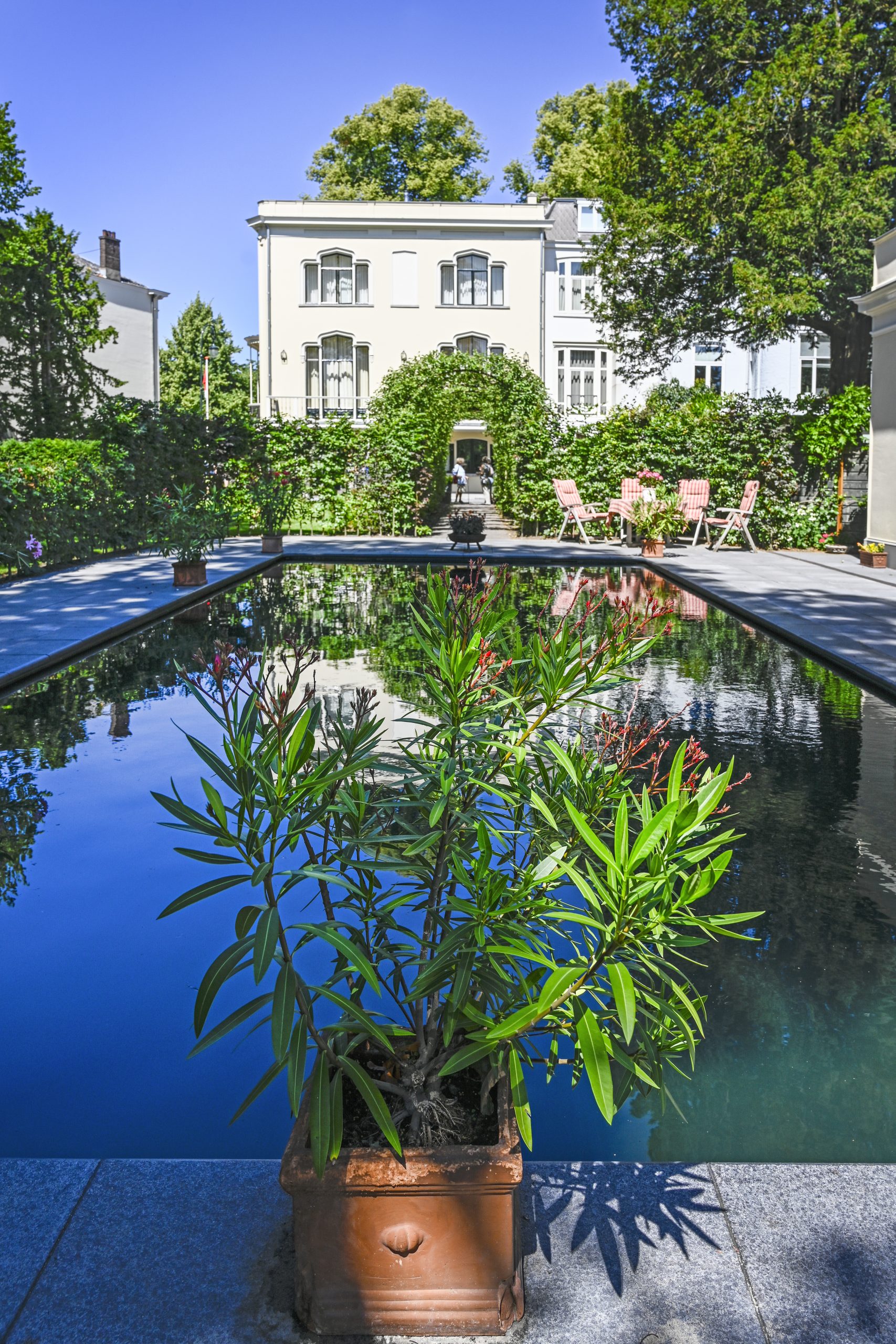 De voorgevel met entree tot het huis ligt niet aan de Maliebaan, maar in de zijtuin, die door een taxushaag gescheiden is van de achtertuin. De oranjerie en de zwemvijver achterin de tuin zijn via een berceau, begroeid met appelboompjes (Malus Evereste), verbonden met het hoofdhuis. In de moestuin staat een Ginkgo biloba. Aan de kant van het Spoorwegmuseum bevindt zich een indrukwekkende bomenrand met onder andere een vleugelnoot, een plataan, een esdoorn, een paulownia en enkele beuken. Samen met het grote gazon, dat gedeeltelijk is omzoomd door een slingerpad, benadrukken zij het parkachtige karakter van de tuin.
