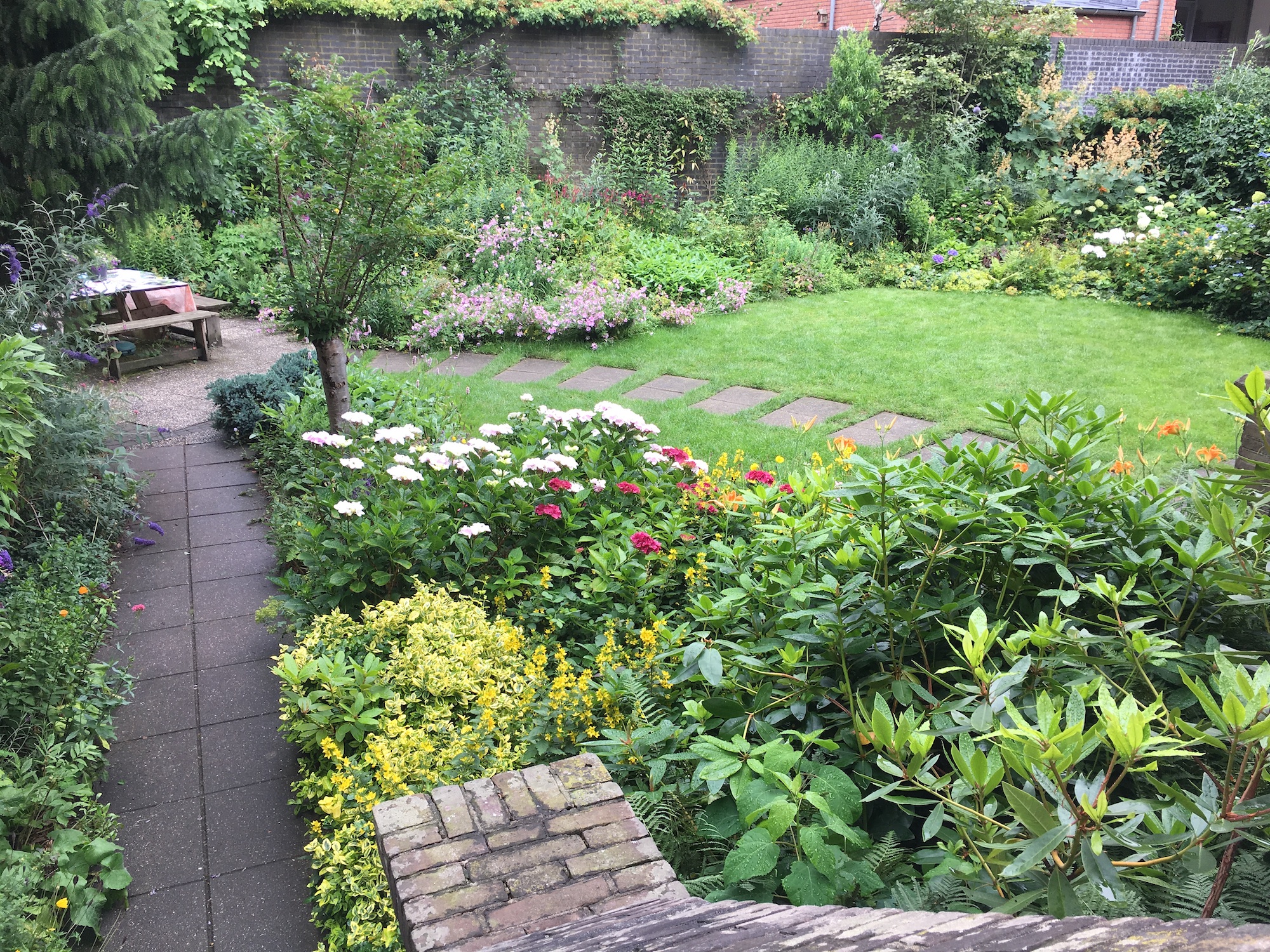 De ommuurde pastorietuin van de Oud-Katholieke Gertrudiskathedraal heeft het oorspronkelijke karakter van een pastorietuin uit de vroege 20ste eeuw behouden. U treft in deze tuin naast hortensia’s, varens en rododendrons kleurrijke borders aan. In de recent aangelegde border zijn onder meer gaura, amsonia, pluimpapaver, geranium rozanne en groenblijvende clematis geplant.